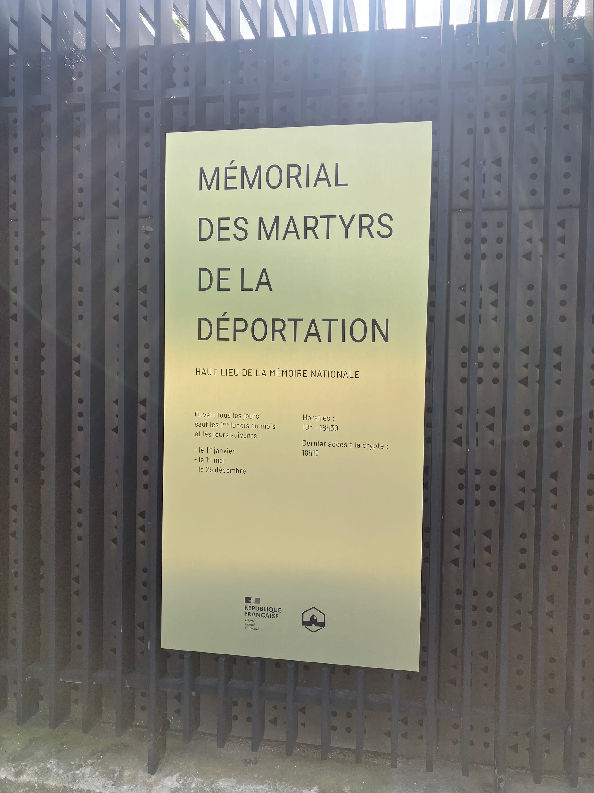 The Deportation is the French name for the 700,000 or so people who were swept up by the Nazis and their collaborators during the occupation. It's right next to the famous Notre Dame, not far from the Champs d'Élysées (pictured from on top of the long staircase up L'Arc de Triomphe - worth the hike for the view)
