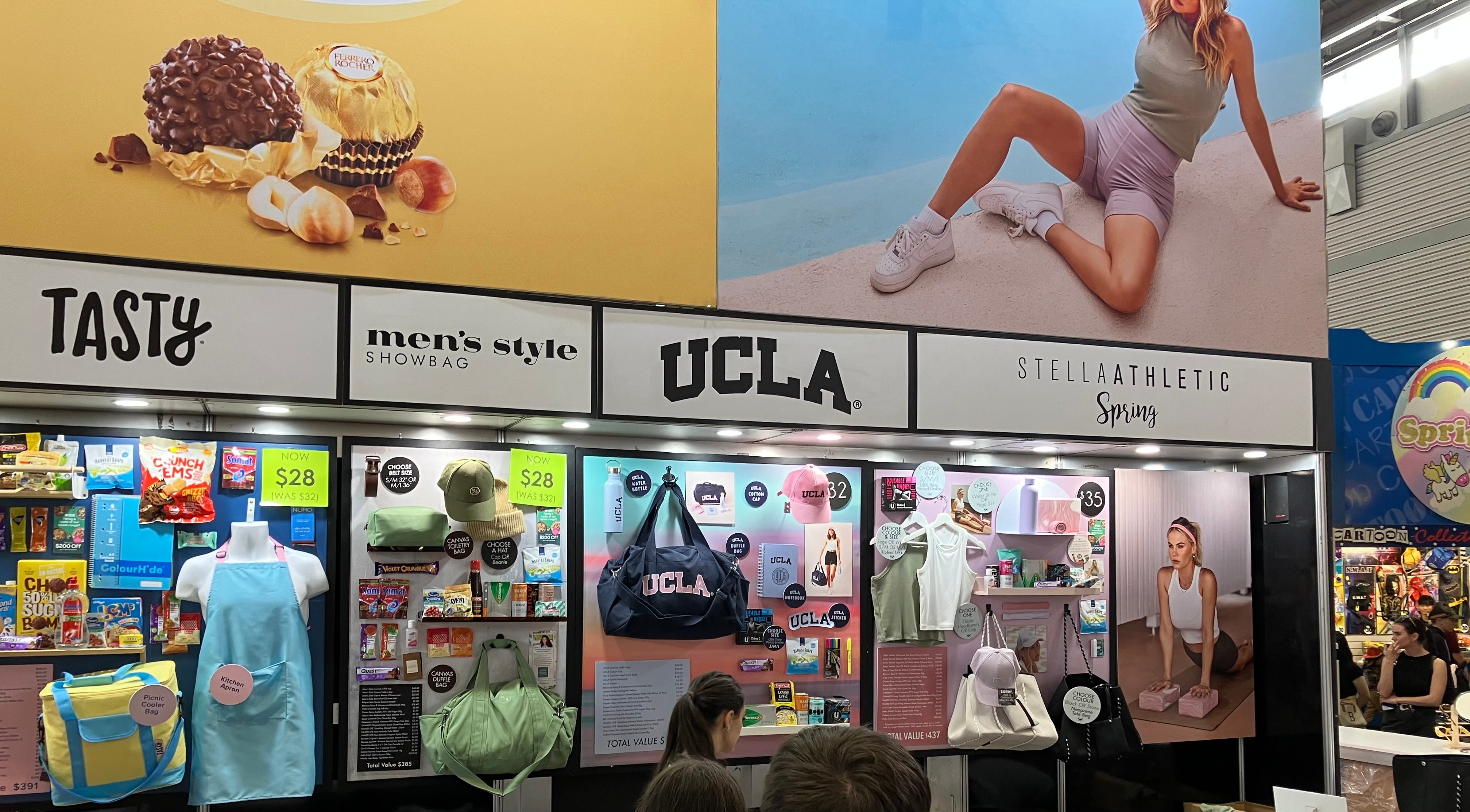 These started as crappy gift bags you got as part of your ticket and morphed into an entire showroom full of branded insanity.